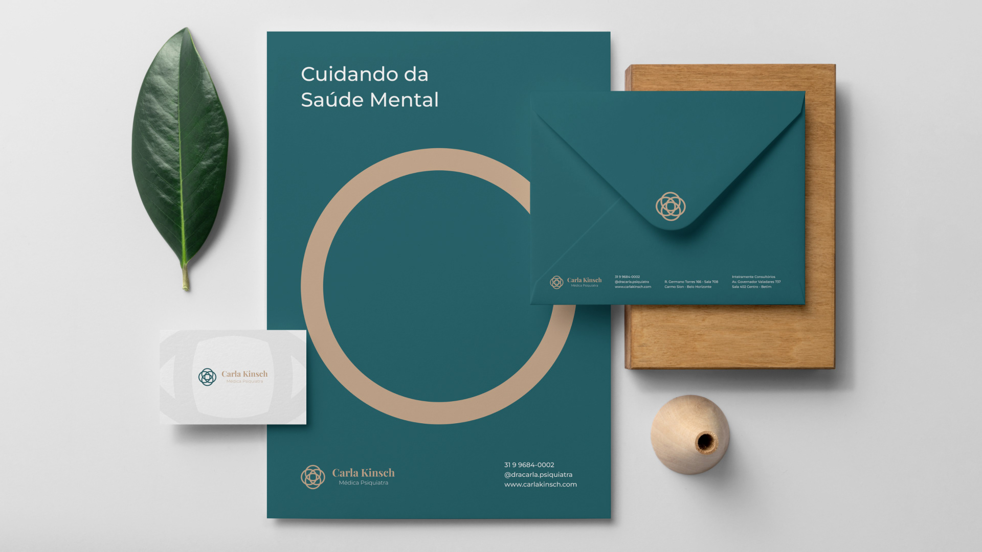 Este projeto envolveu a criação da identidade visual para a Dra. Carla Kinsch, uma psiquiatra focada em oferecer atendimento de qualidade e em promover o bem-estar e a saúde mental de seus pacientes. O objetivo era desenvolver uma identidade que refletisse seu compromisso com o acolhimento e a tranquilidade no cuidado psiquiátrico. Os quatro círculos presentes no logotipo representam a pluralidade dos saberes e o inconsciente coletivo, conectando-se às mandalas utilizadas na Psicologia Junguiana. Esses elementos também simbolizam eternidade, perfeição e divindade, uma vez que o círculo não tem princípio nem fim. A escolha das cores complementa esse simbolismo: o verde transmite esperança, vitalidade e renovação, enquanto o bege remete à calma, conforto e acolhimento. A combinação dessas cores reflete os altos e baixos da vida, simbolizando o equilíbrio necessário para aprender e crescer com cada experiência, seja ela feliz ou desafiadora. O projeto incluiu a criação do logotipo, paleta de cores e aplicações em materiais diversos, como redes sociais e cartões de visita, criando uma identidade visual que conecta ciência, conforto e acolhimento.